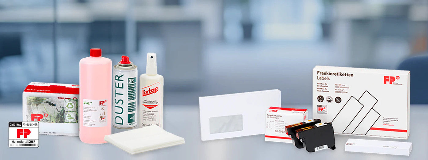 L'inchiostro FP originale è stato testato, certificato e approvato. Garantite un funzionamento affidabile a lungo termine con gli accessori originali Francotyp-Postalia!